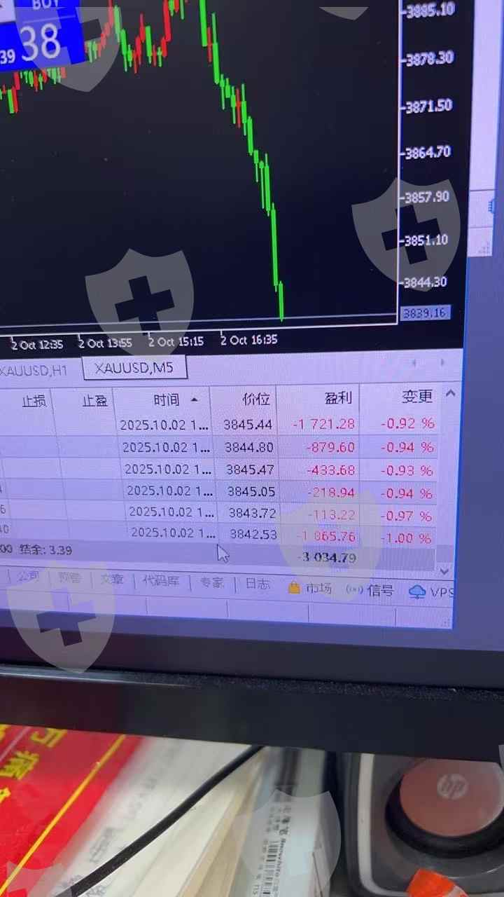 10月2日晚上,EA本来只进了4个0.03的单子,大概在3896,3883,3870和3857这几个点位,设置13点补一小单。但是他们平台的EA一直加倍加仓,到最后爆仓出场的数据却全是3881一个位置拼命进1.3手。最后改到出场数据42全爆,期间用手工去平仓后他又自动继续进,甚至把我账号踢下线,直接爆仓没了5300(本金3000)很明显EA是故意的,我当时还拍照留了照片,事后还说正常的失真加仓,甚至最后还把我账号后台删了。要求退换本金
