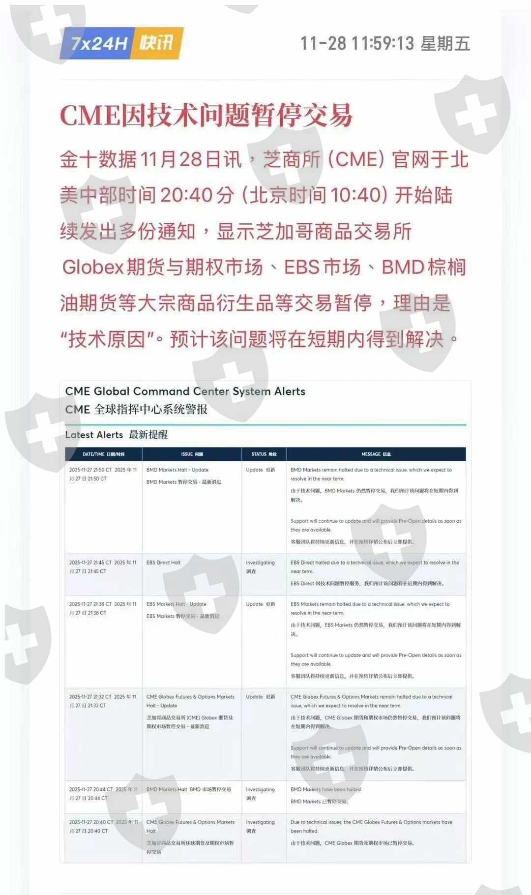 • CME 技术故障导致报价异常