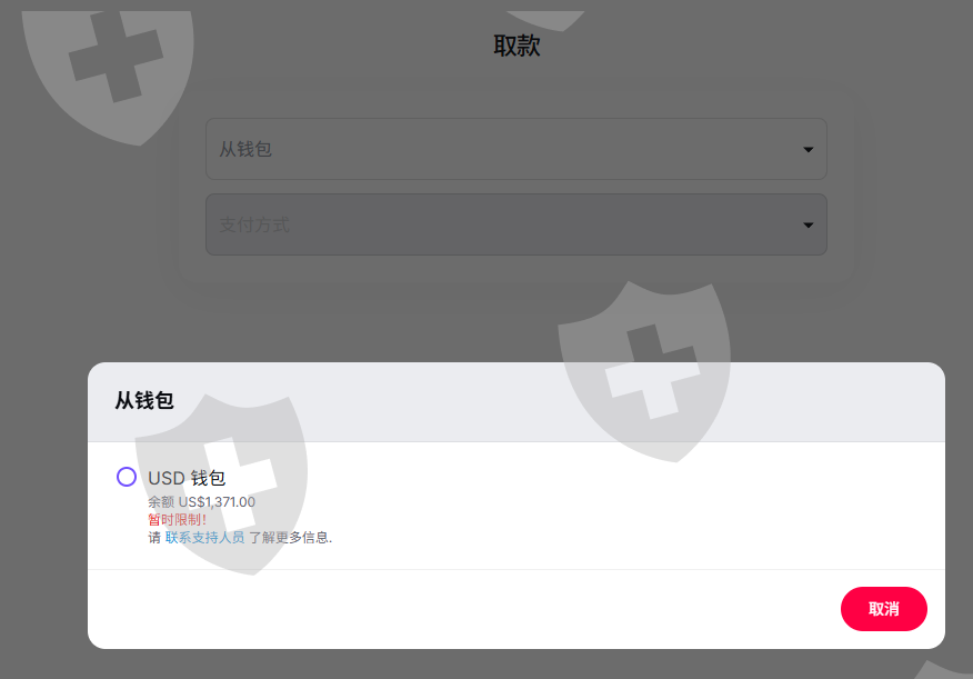 无法出金、并且扣除盈利,USD钱包余额US$1,371.00暂时限制!