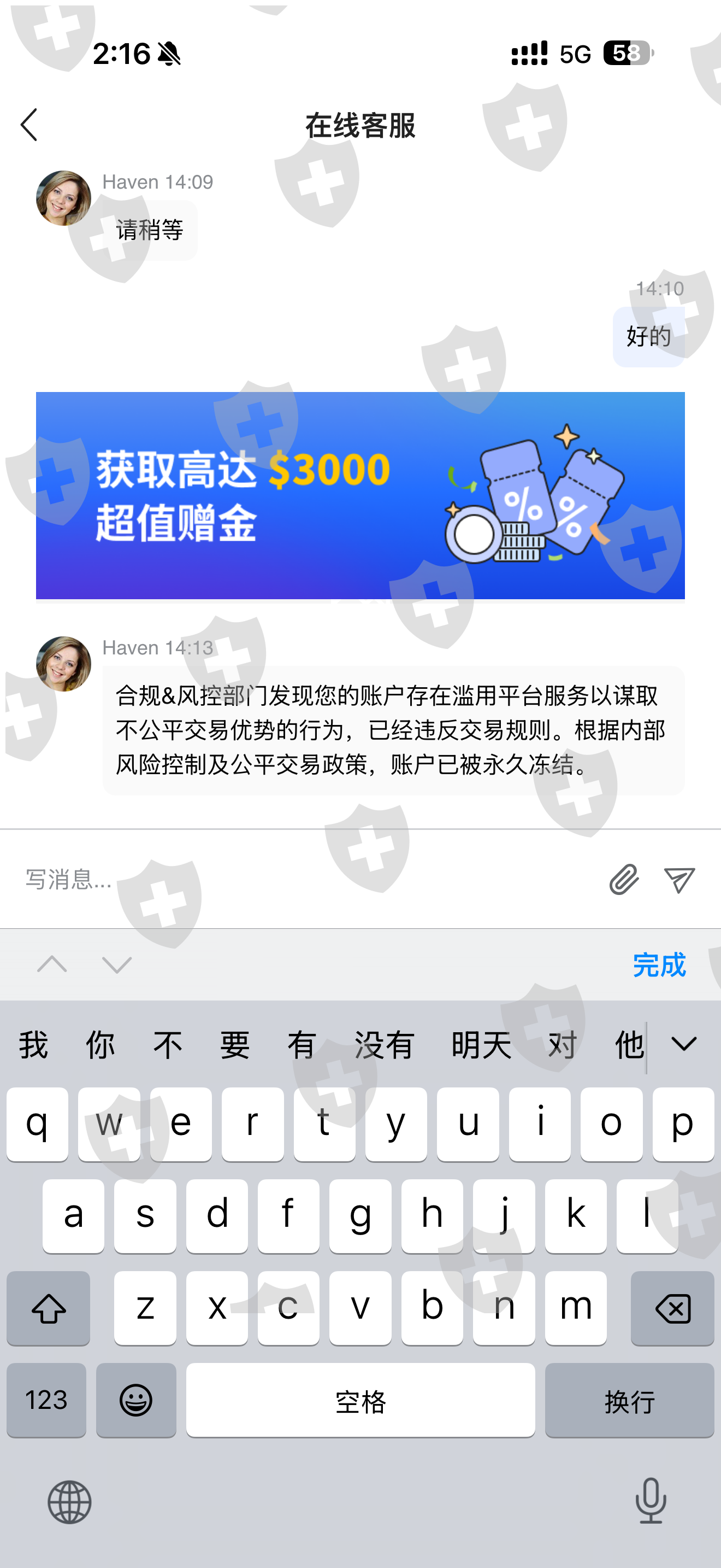 洗2w u 说我犯规 直接封我的号