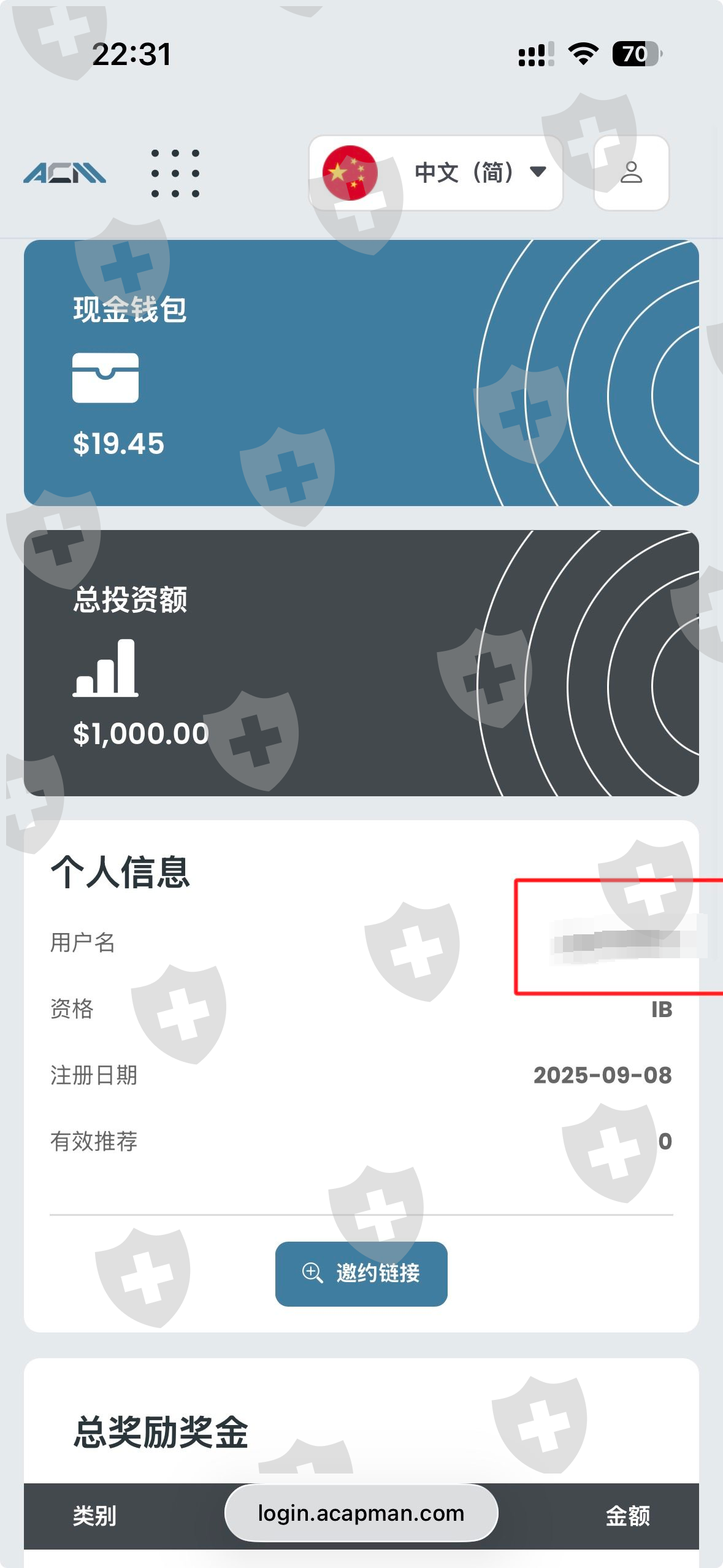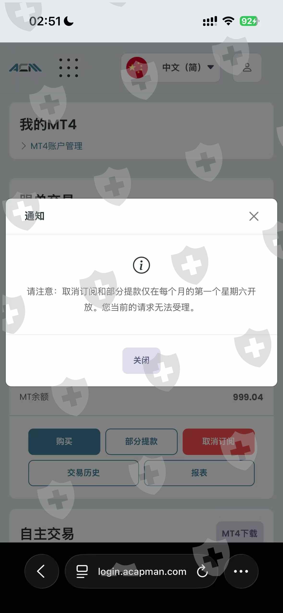 本人于2025年9月月向ACM平台入金1000美元,但开户是在远东贵金属进行的。