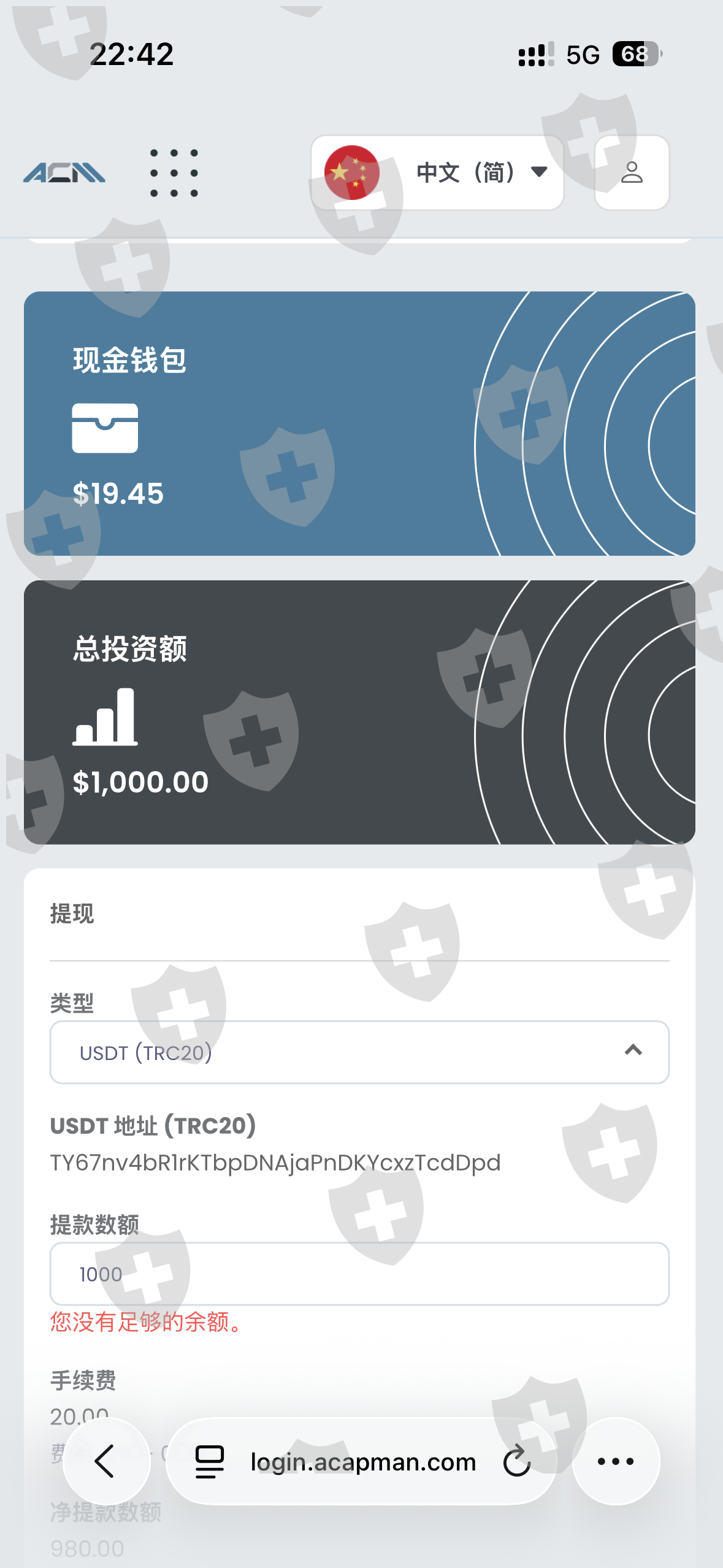 本人于2025年9月月向ACM平台入金