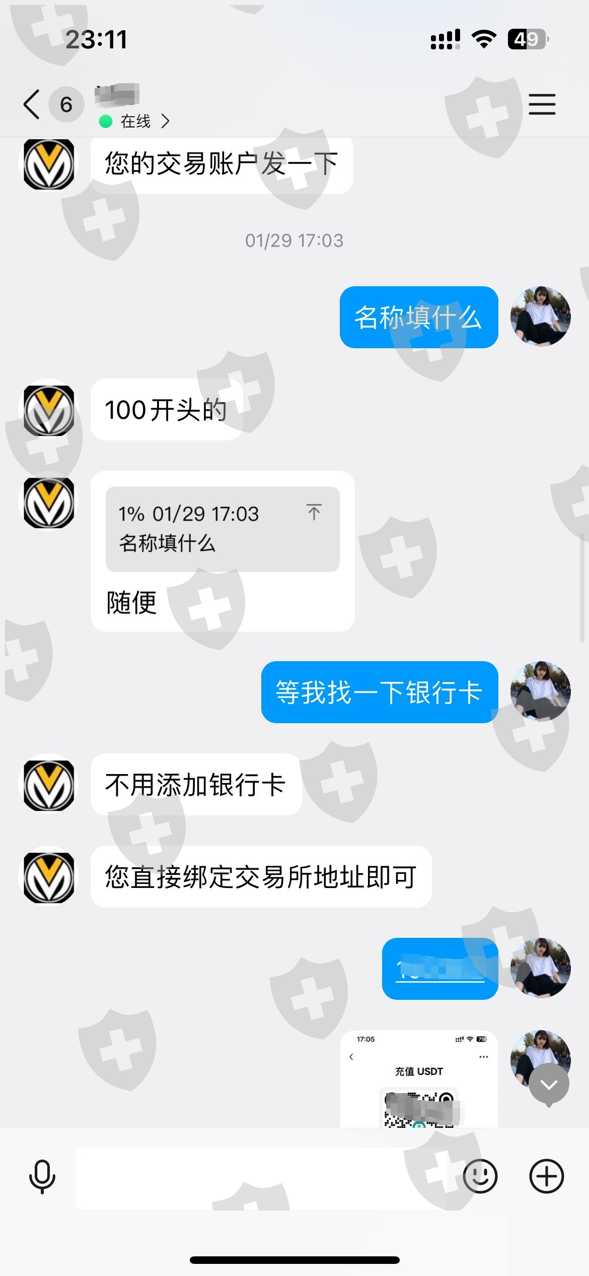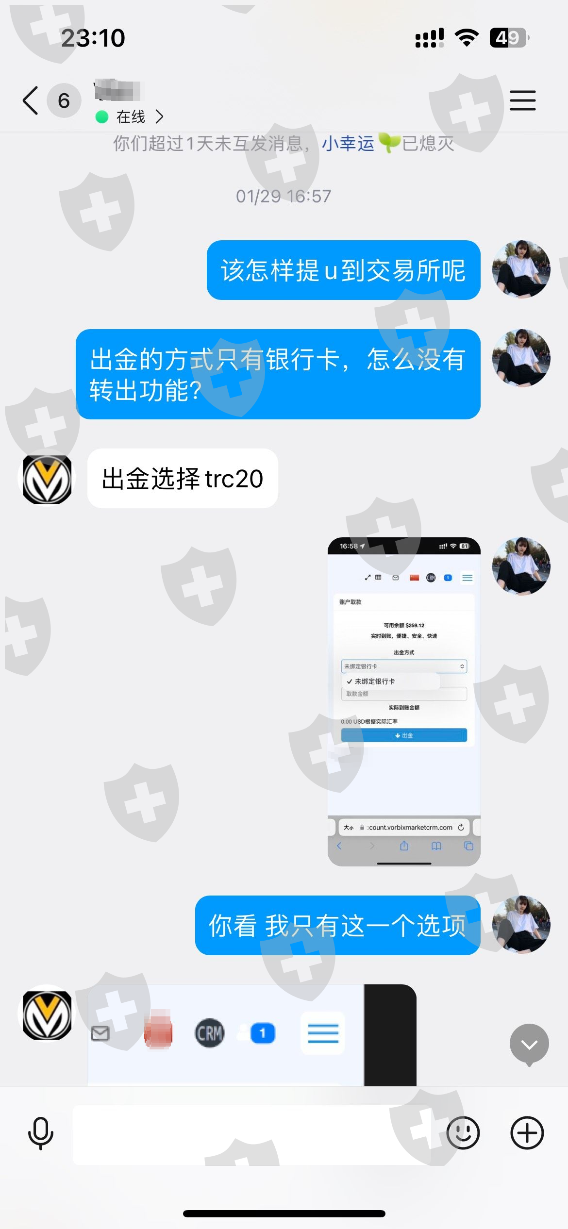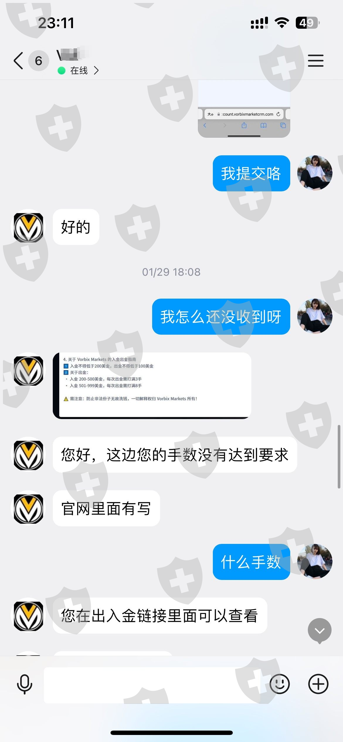 我是一个外汇新人,问了一个做的蛮久的网友,他推荐了这个平台,刚入金我就开始做了,做了一个星期赚了100u,想提现但是不会操作,问了客服,客服前面还是很正常的教你怎么操作,到了提交提现的时候 我等了好久没到账,我就问客服了,客服说我没打满手数…还发了一张照片让我看。我也是很无语 我问的时候 提现前不跟我说,提交了没到账还得我问才说。被他这么一整就没心态了,无法出金。