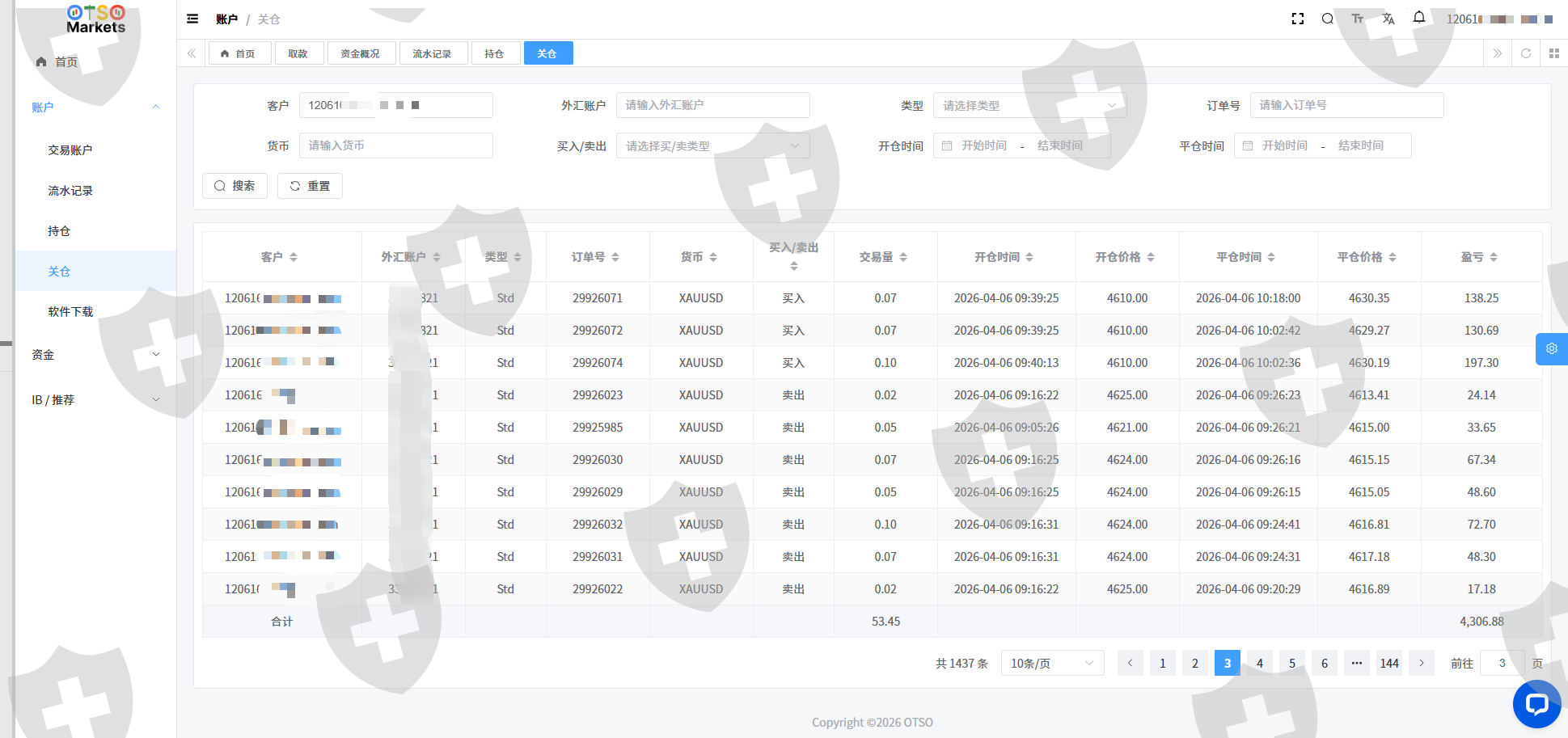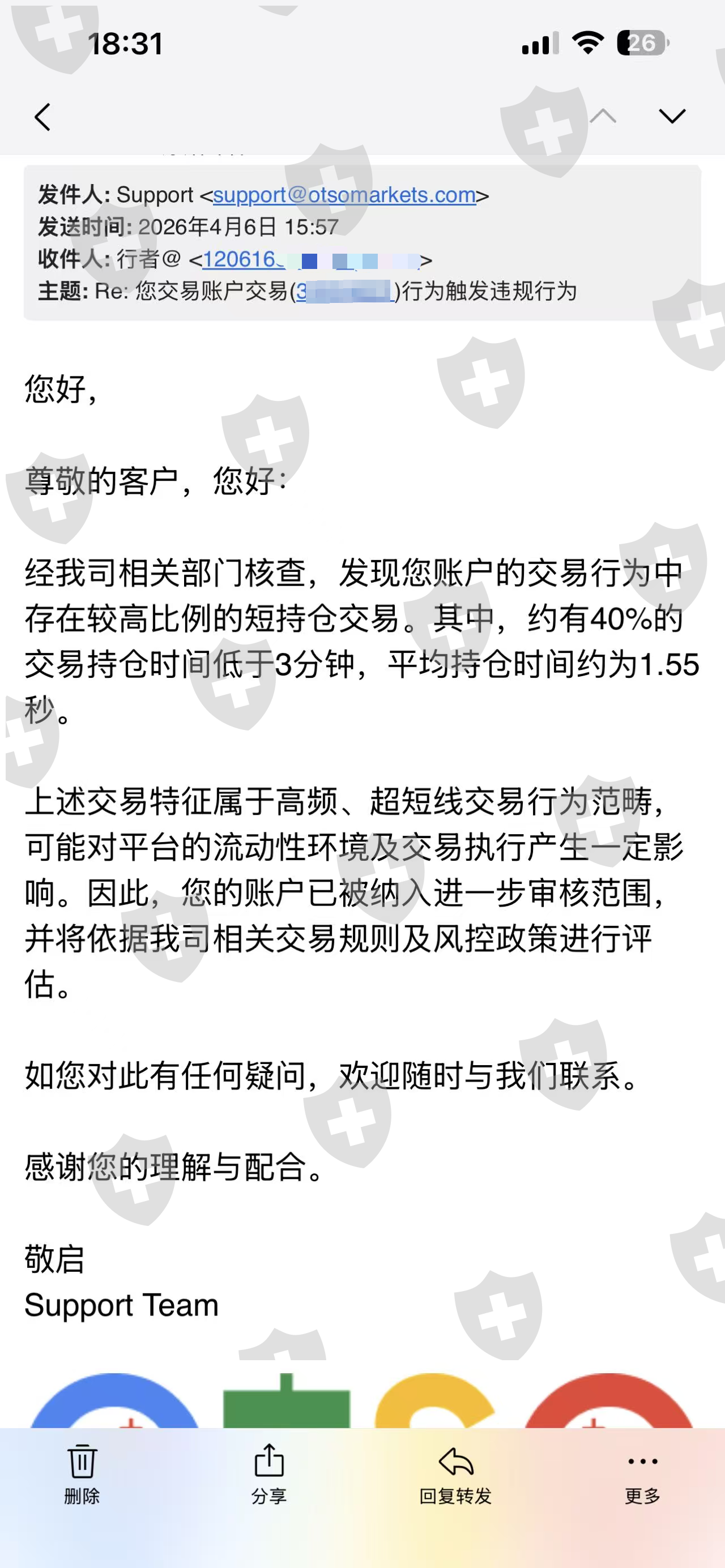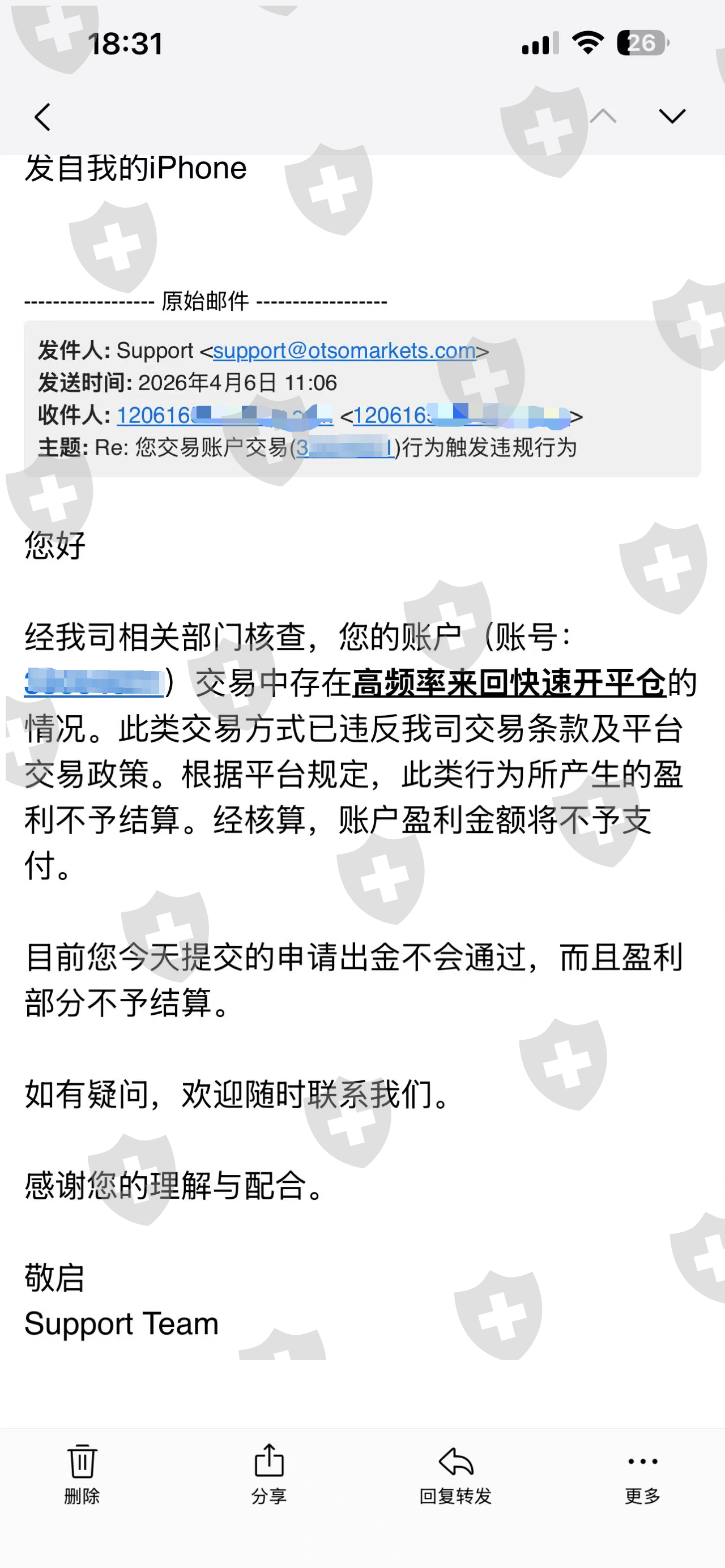 OTSO这是一家典型的"以违规交易和高频交易违规"为借口,本质是"客户盈利=平台亏损"的对赌模式"盈利不让客户出金也没有合理解释,平台内部群交流直接不让出金,你看看你们自己吃像有多难看!此前OTSO平台与一个名为TSKFX的黑平台也存在直接关联——有用户投诉TSKFX无法出金后,账户被强制迁移到OTSO平台