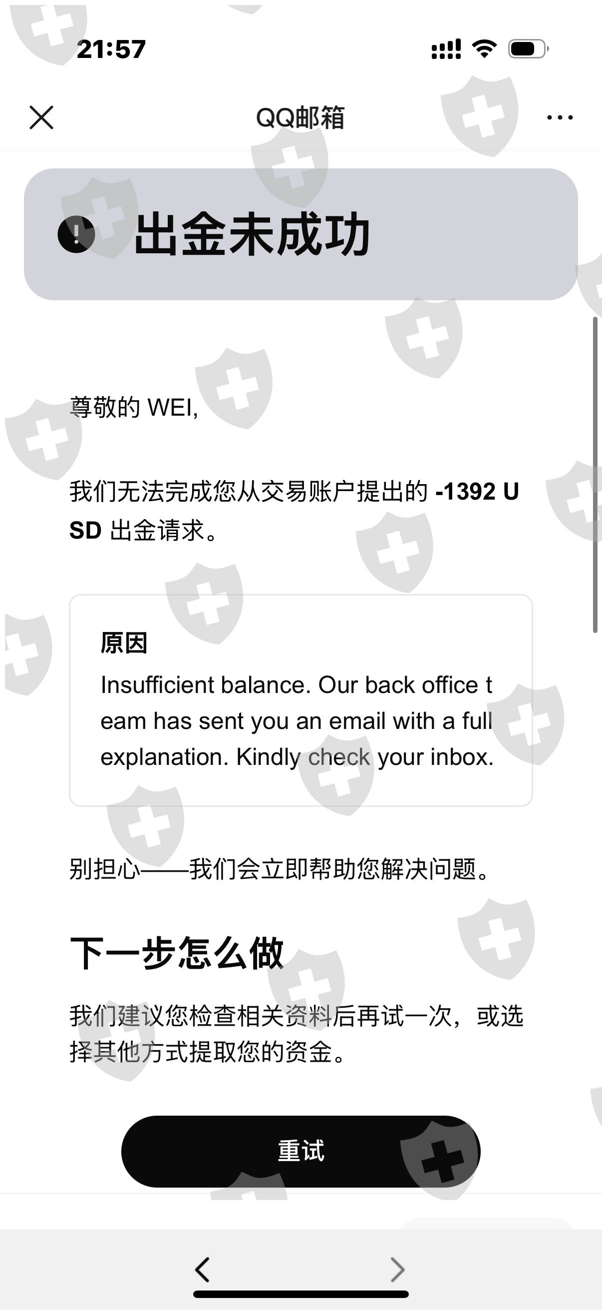 无法出金 ,后台登录不上