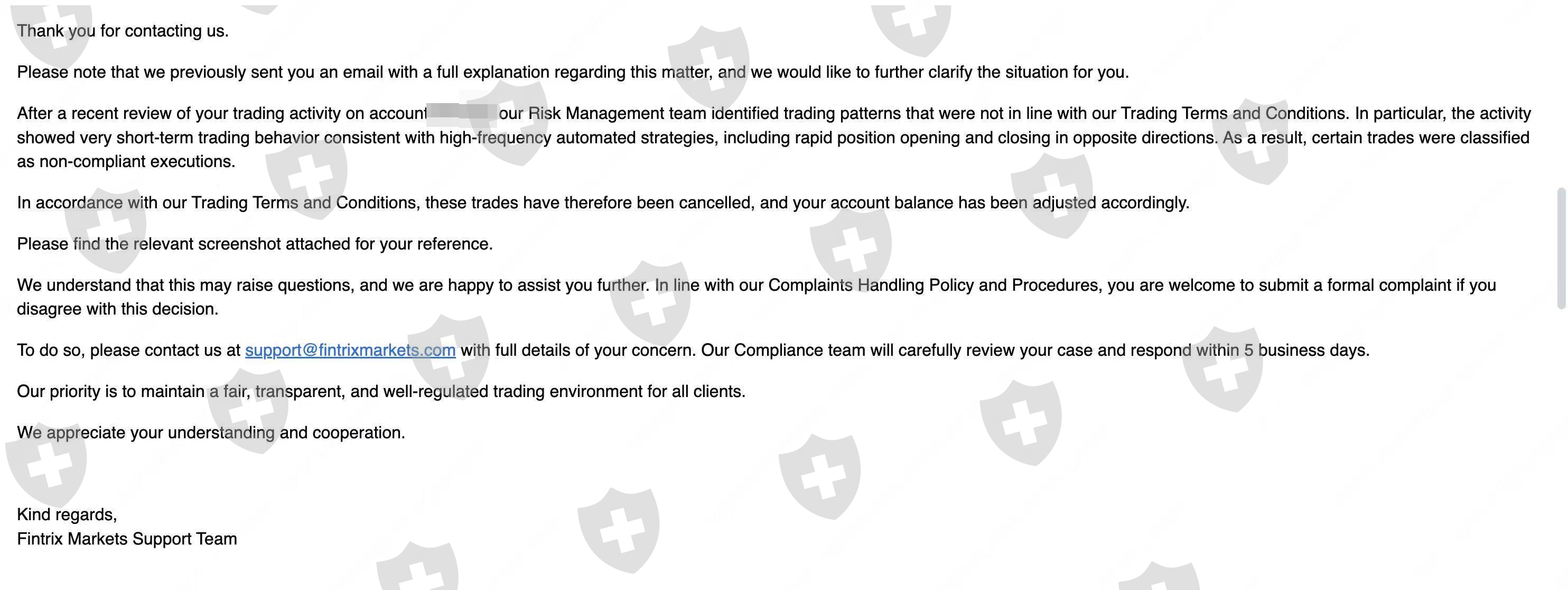 在线客服全程装死拖延,邮件回复各种敷衍。希望天眼官方介入,也提醒所有交易者:远离 Fintrix Markets,这是一家只能亏钱、不能赚钱的纯黑平台!不退回我的 1078 美金,我会一直维权到底!