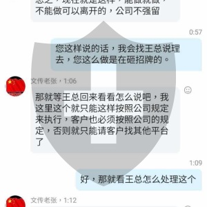 我在文传做代理,说好一手单返80美金。合作一个月之后从7.1号开始只返我30美金一手。我合计过少5000美金佣金,多次找客服沟通都不理会我,我还和我上一级沟通。公司老总的回复真可笑。