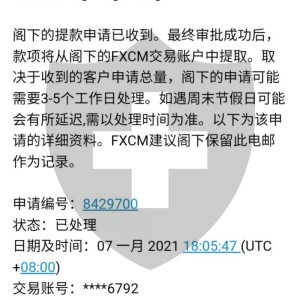 福汇 回复英国您好,对于您的反馈FXCM福汇已收到。很遗憾一直没有联系到您。经查询您的提款已经处理并应该已经到账。如果您有任何疑问,您可以随时在服务时间联络FXCM官方网站客服。再次感谢您对福汇的支持。我们期待为您提供更好的竭诚服务。