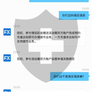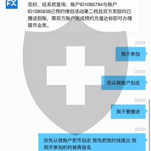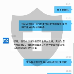 因为报名了一个情侣活动 充52000送5200usdt 活动没写清楚就报名了 结果报名完直接系统先把奖金打我账户上 让我充52000usdt才能出金 我说我没钱充了 让系统扣除掉 沟通无果 强买强卖 必须充够34万才能拿回我自己的十万本金 黑平台圈钱 太坑了 大家小心被坑