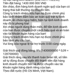据我报道,我通过whatsapp应用程序通过客户服务进行交易,当我要求提款时,它告诉我支付20%的税,缴纳20%后,几天后,我问为什么我不能提款,税务部门怀疑我洗钱,黑钱应冻结税款,捷克证券交易委员会要求我支付提款金额的18%,以确保成功3天后将提款退还。在我又支付了18%的款项后,我的提款帐户遇到了高额付款问题。我联系我的银行没有举报,cskh发了一封电子邮件,要求支付9%的款项以确保24H后提款+ 1%的款项,因为我的帐户有问题,所以要扣除存款费用,在全额支付之后再打电话,因为政府资金约有3-5天的约会。等了一天多之后,我发短信并没有回应