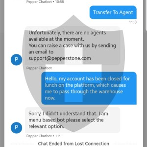 我在9月17号上周五下的几笔德指订单,在9月20日这周一早上无法平仓,导致账户内资金全部亏损并穿仓,在早上点击平仓会自动跳转到账户页面,因为平台问题无法平仓。等到下午登录时,账户余额已经为负值,显示已经穿仓,导致我损失惨重,并且联系客服已经无人回答,登陆官网也是机器人回复,请解决我的账户亏损问题。打了客服电话也是一直让等回复。发了邮件给他们,也没有回复。