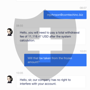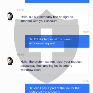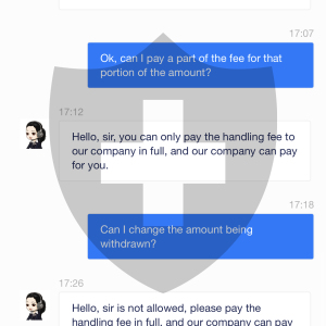 在过去的一个月里,我对这家公司进行了一些小额投资,没有出现任何问题。在我进行了更大的投资并试图提取我的收入后,他们告诉我,我需要支付 11,118.47 美元的提款费才能收到我的钱。我不能从转移的内容中删除该金额,不能取消提款请求,不能为部分资金支付部分费用,或更改提款金额。我的资金也被冻结,直到转账完成。