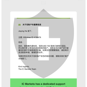 IC Markets Global 回复澳大利亚请用户联系平台客服处理