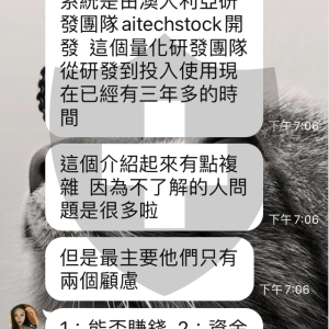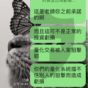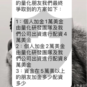 該網站以量化自動交易可穩定獲利為誘因(澳洲研發團隊研發之系統),誘使投資人入金投資,然後以量化交易遭到別的團隊狙擊導致資金虧損為理由,聲稱投資人再入金可分散風險,誘騙投資人再放入資金,然後二次狙擊,資金虧得更嚴重,竟然故技重施,要投資人再放入資金,說保證不會再發生狙擊了,很明顯的詐欺