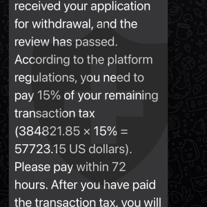 他们要求我缴纳15%的税,这太荒谬了。他们是国外的交易商,毫无悬念地接受汇款,但在我要求提款时要了很多钱。我要任何问题地拿回我所有的资金,这是不可接受的征税。