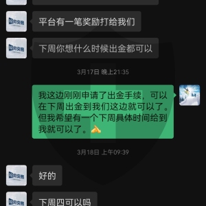 3月17日办理出金手续,自今无法到账,请注意诚信。