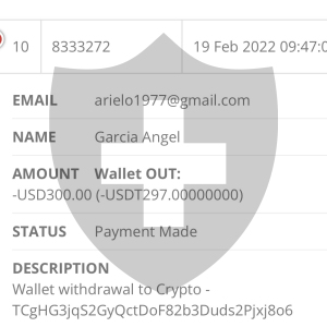 我没有收到我在2月19日申请的300美元的出金。我写了十次以上,但没有收到IPC的答复。我的电子邮件:arielo1977@gmail.com