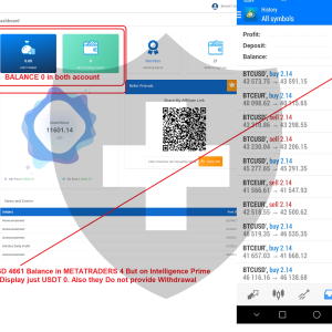 我从上两个月开始加入INTELLIGENCE PRIME CAPITAL LTD。但从过去 24 天开始,我没有获得任何利润。他们禁用了提款选项。请检查随附的屏幕截图。同样在加入时,我订阅了 Genius Bot,它没有资金提取的锁定期现在公司已经强制转移,而没有要求锁定 100 天的 MASTER C Bot,这意味着我在接下来的 100 天内无法提取我的资金。超过 30 位以上的用户在我的推荐下,自过去 24 天以来,他们都没有退出。欺骗客户。