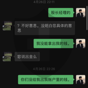 把我的钱拿出来 现在一个多月了。你们快点把钱拿出来。