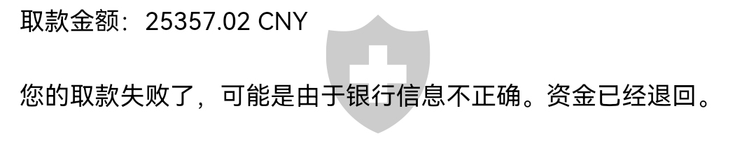 已收到,11223.37美元取款。3776.63取款失败资金也回到账户。感谢