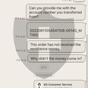 KangDa 回复英国账户资金来源不明且不配合银行验证