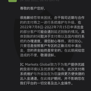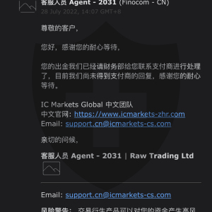 IC Markets Global 回复澳大利亚出金一切正常,请用户耐心等待