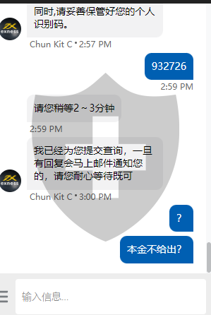 我是Exness客户我的账号是:hvsi2548@hotmail.com月初入金的跟单盈利不让我出金 每天找客服都说处理中叫耐心等都不给解决一天拖一天 现在说出本金也不给出