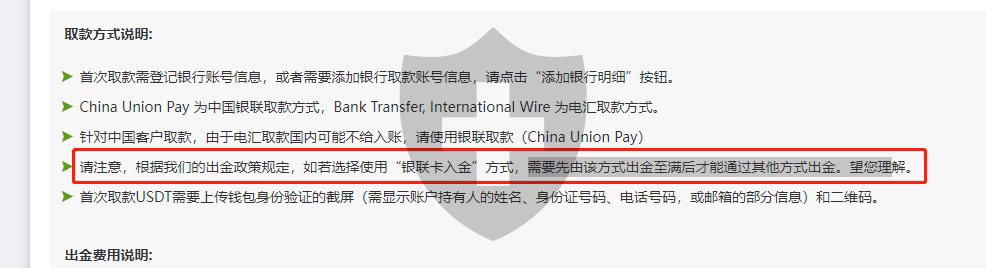 根据它的政策,银联入多少,就只能出多少,然后其他出usdt给客户,关键是我没有用银联入金,小部分是支付宝微信入金,大多数是usdt入金,现在usdt也有这个要求,反过来要我一定要银联出金,说到底就是不给出,黑!