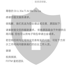 关于您的出金问题,您的最后一笔出金款项在12月7日已退款富拓账户。由于我们的的网银支付商提供有限度服务予少数民族客户,目前客户无法使用网银转款出入金。我们建议您往后使用电子钱包(Skrill, Neteller, Perfectmoney) 进行出入金活动。我们深感抱歉为您造成不便。