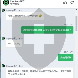 易汇 回复澳大利亚您好, 客户的出金我们正在为他跟进,如果有任何问题欢迎直接联系官网在线客服,global@eightcap.com。谢谢。