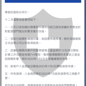 先锋国际投资集团 回复中国香港用户您好,由于平台出金量大,处理缓慢,请您多多谅解。