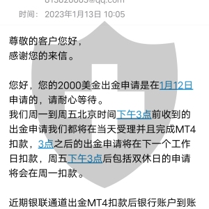 周三出金到现在未扣款,问客服也不处理,发了几封邮件也没有处理