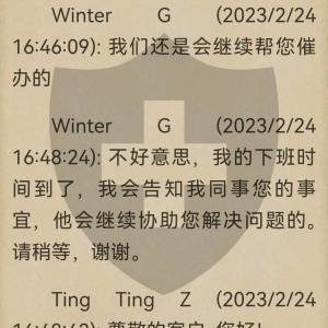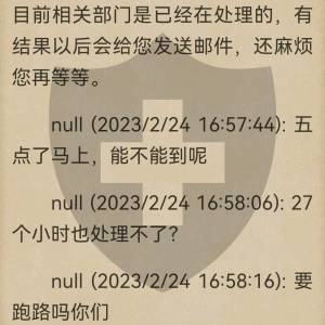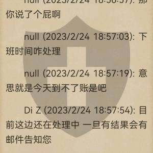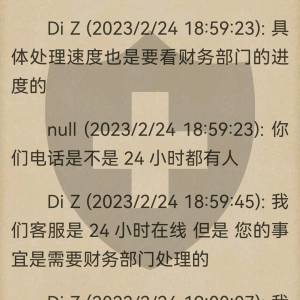 看看这回复,告你在处理中,然后告你财务部门下班了,下班了还他妈怎么处理