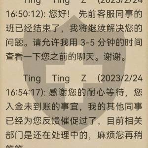 入金二十四小时没到账,问客户都是回复说在处理,处理了这么长时间都没到账