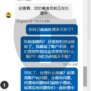 都十八天了,不管是400电话,邮件,在线客服都是说相关部门处理中,就是不给出金,强盗行为,联系有个屁用。