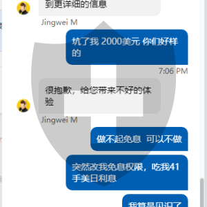 大家好,我是2023年4月11号 注册的EX的账户,当时后台我也看了 是高级免息账户!我在4月12号当时持有的41手美日空单,隔夜利息免费 我也没在意这个垃圾平台 于北京时间5.50分给我发了个邮件,说把我降为普通账户 不予免佣!直接又把我手里的单子 全部加了隔夜利息!高达1772美元!我有截图 交易记录 全部都有!EX 你也算个大平台, 免息你免不起可以不免, 你不愿意 你提前说。你在我手里持单 突然改我资料 给我加隔夜利息 万一把我弄爆仓了 你们赔不?现在EX是百般抵赖 你们凭什么改我 免息不免息? 在客户手里持单情况 下 突然改 你们什么目的?赶紧赔我钱! 不然没完 垃圾EX!!你们要是舍不得给免息!可以不给 觉得我买的多了 你们提前同志玩外汇的都知道 北京时间五点 结算当日隔夜利息 你们给我5.50发邮件 改我当日豁免资格6.00又给我把利息 全部加上 导致我单子全部亏损!赶紧赔钱!!!!