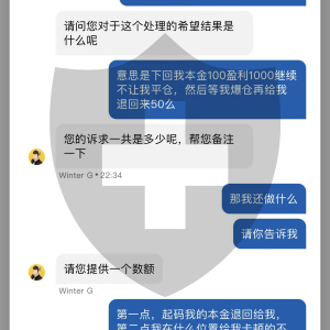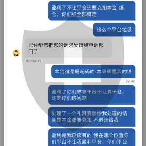 盈利不给我平仓,处理结果是只退回我本金的一部分,首先我的本金本来就是我的钱,你必须要退回给我,其次为什么盈利不给我平仓 等爆仓了就好了么,我1979做的空1971要平仓你们平台不让我平,2个单子,16点盈利 本金本身就是我的 是你们平台应该退回给我的,其次盈利我想平仓就平仓而不是你们不给我平仓,亏本你们就能平仓了这是何道理,