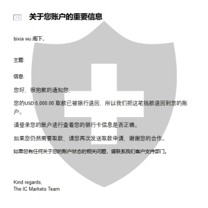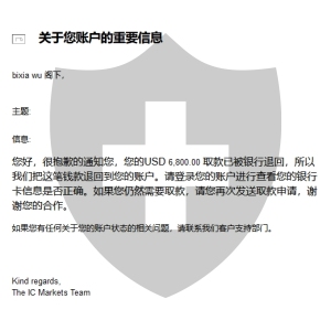 本人在ic前前后后玩了近10年,有赚有输,最近盈利还算可以,之前出金没遇到过问题,但从7月底开始,被卡出金N次,每次都提示仨银行信息是否正确,我可以肯定是没有错的,之前出金都是同一张卡,然后又办了新卡,仍然无法到帐