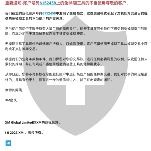 XM 回复塞浦路斯关于您对账户6152458的投诉,我们进行了立即调查。经过仔细核实和沟通,我们遗憾地通知您,我们无法改变与您账户问题相关的决定。请参考2023年12月8日发送的重要通知电子邮件以获取指导。再次感谢您对XM的理解和支持!谢谢。12/19/2023