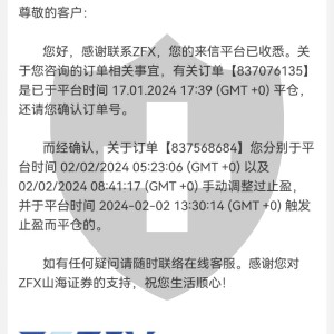 本人姓名:赵敏 交易账号:2838165 有问题的单子:837076135与 837568684 2024年2月1日到2024年2月2日4点45分前单子被强平,客服说山海黄金品种系统出现问题,MT4不显示订单;客服说2024年2月2日4点41分系统没恢复前单子设置了止损止盈, 单子这期间,客服说的清清楚楚2024年2月2日4点41分单子还没有恢复,MT4上没有恢复 系统自动给我的单子带止损止盈,(备注:系统没有恢复,单子在MT4上不显示,根本无法设置止损止盈,因为MT4上没有显示订单,客户却说自己设置的止损止盈),2024年2月1日凌晨2007的空与2019的空平仓的时候我的订单上清清楚楚显示没有止损止盈,却在2024年2月2日4点41分系统自动给我带了止损止盈,平台未经本人同意擅自强制修改我的单子止损止盈,并没有告知本人,要求赔偿,