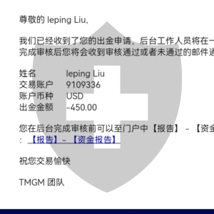 TMGM 回复澳大利亚亲爱的客户,感谢您的留言。请将相关信息发送至官方客服邮箱support@tmgm.com,或联系您的账户经理。谢谢。
