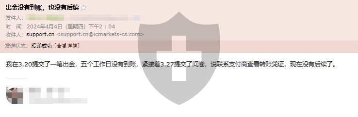 3.20就申请了一笔3000u的出金,说最晚五个工作日可以出金,五个工作日没出金,然后3.27让我填问卷,紧接着说帮我联系支付商查看转账凭证,说1