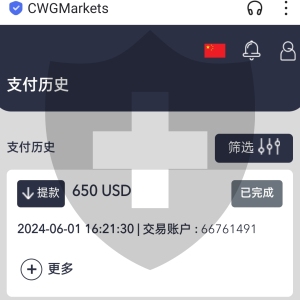 CWG Markets 回复英国客服这里未收到过他的投诉,唯一此客户的咨询是"6月5日,询问网站打不开,想要客服提供新的网站"。刚才我查询了他的后台,650美金已经在6月3日提交了,后台记录也是已处理。