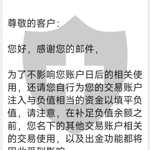 还威胁我,不补足负余额,所有账户交易和出金都会受影响