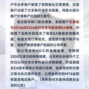 PRIMETIME GLOBAL MARKETS 回复澳大利亚该事件源于一支专门从事市场操纵的非法交易团队的蓄意和精心策划的行动。调查已经证实,这个团队(ID:64042,由张伟领导,身份证号:140105199311213310,邮箱:18834861555@163.com)以虚假借口操作多个交易账户。他们冒充机构投资者,声称要扩大市场份额,强制使用他们推荐的专门设计带有延迟订单显示功能的复制交易插件。通过复杂的黑客技术,该团队侵入了我们的EA交易服务器,非法修改交易订单,并人为生成大额交易。这些恶意活动直接导致客户账户遭受重大损失,严重损害了客户利益和公司声誉。