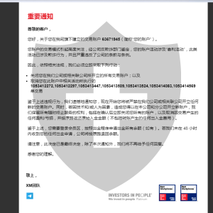 XM 回复塞浦路斯尊敬的客户,感谢您选择XM并对我们的支持!关于您提出的账户63671945的问题,我们已经迅速将其转交给相关部门进行核实和调查。经过多次核实和沟通,我们遗憾地通知您,相关部门无法改变他们的决定。我们请您参考2024年12月5日的重要通知邮件。再次感谢您对XM的理解和支持!