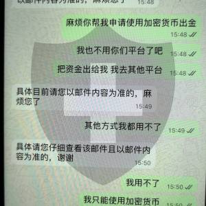 这家平台不给出金,我自己的资金我自己选择出金方式的权利都没有,强制你使用你不能使用的出金方式出金,一直回复说按照邮件内容执行,可是其他方式我使用不了,就不给我出金了吗?