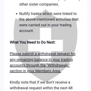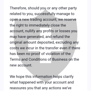 经过我们中间办公室团队的彻底调查,发现您的交易活动涉及在多个账户之间进行相反交易,试图利用价格的剧烈波动。这种做法被视为违反我们的交易条款,不被允许,因为它旨在不公平地利用我们的交易条件。