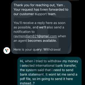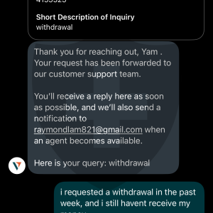 而到現在4月9號只收到交易的本金,盈利缺無影無蹤。我嘗試聯絡客服,他們卻完全沒有回覆。