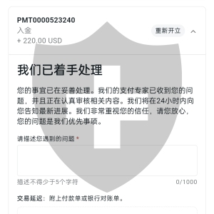 我的一笔入金就因为选错支付方式到现在也没有给我入金 也没有给我退回 一个月了 没有动静 前前后后一个月了 没有处理